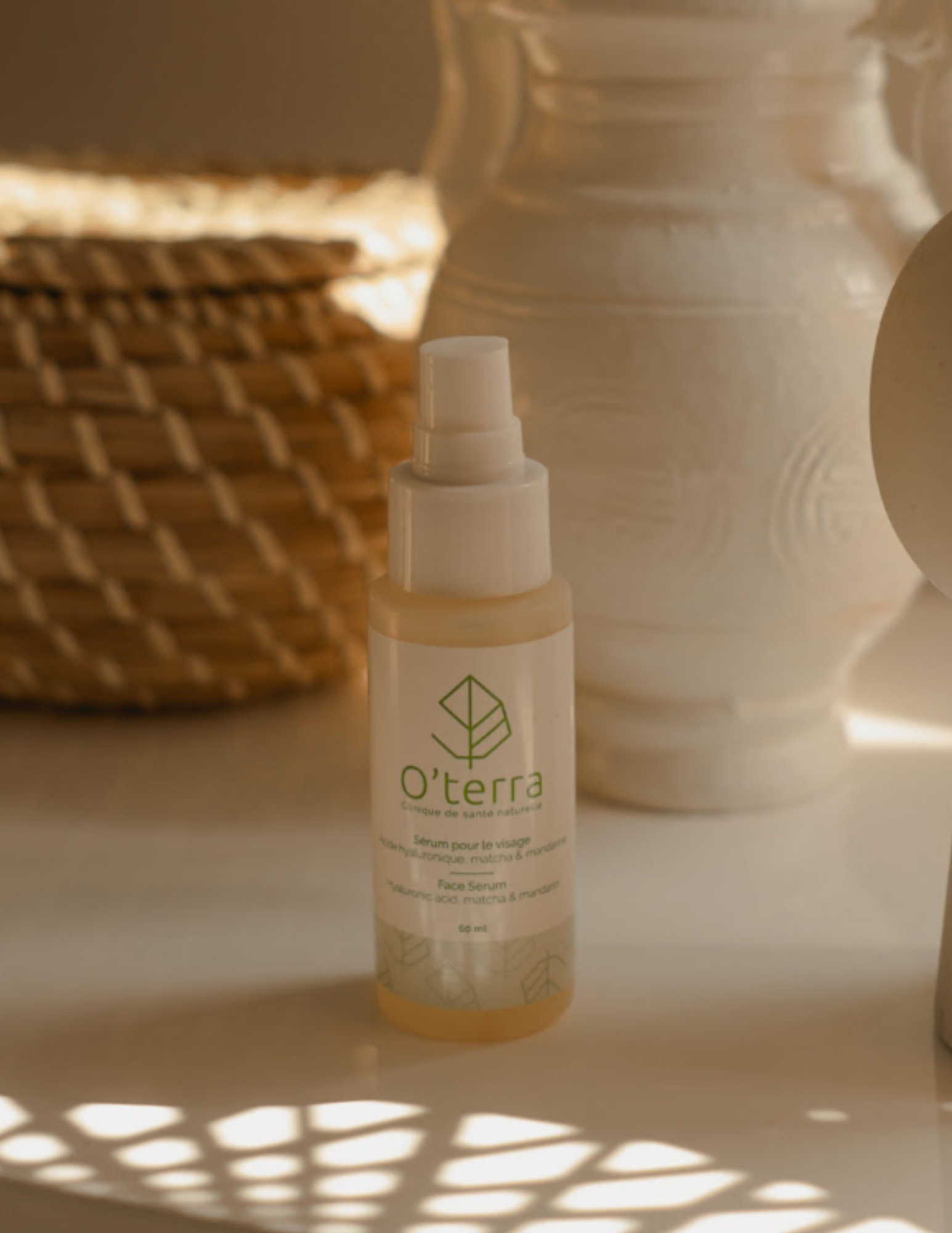 The facial serum based on hyaluronic acid, matcha, and mandarin is the secret to radiant and visibly rejuvenated skin. Hyaluronic acid, a key molecule for hydration, holds up to a thousand times its weight in water, acting as a veritable reservoir of hydration for your skin. This serum is designed to provide an optimal amount of hyaluronic acid, promoting intense hydration, improved firmness and a visible reduction in fine lines and wrinkles.