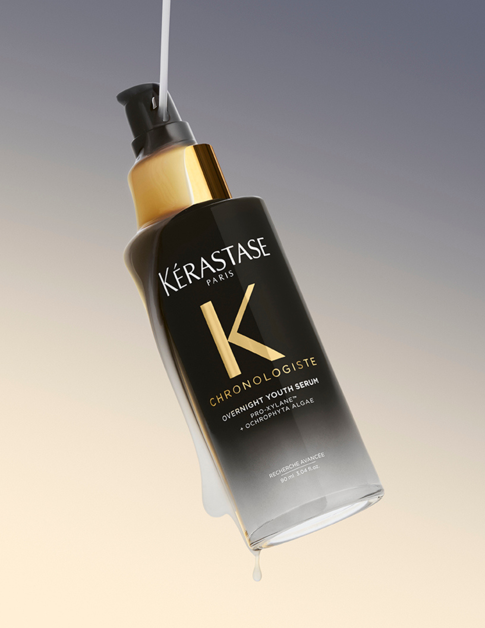 Sérum Nuit Jeunesse de Kérastase est un soin de nuit correcteur d'âge, infusé en Pro-Xylane™ et en algue Ochrophyta, conçu pour corriger les signes visibles du vieillissement capillaire pendant la nuit.